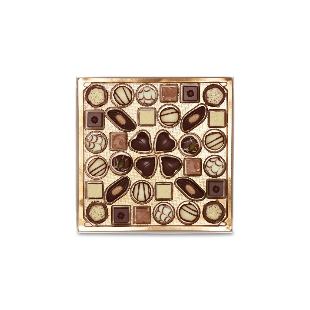 Složení: cukr, kakaové máslo, mléko v prášku, kakaová hmota, lískové ořechy, mandle, čistý tuk, sušené odstředěné mléko, glukózový sirup, hroznový cukr, glukózo-fruktózový sirup, citronová kůra, pomerančová kůra, matný deodorant, sluneční mléko, šampaňské a kondenzované mléko, cukr, alkohol, pšeničná mouka, višně, káva, přírodní aroma, aroma, zvlhčující látky (invertáza), sladový výtažek z ječmene, okyselující látky (kyselina citrónová), nízkotučné kakaové prášky, sůl, koncentrát citronové šťávy, aroma přírodního pomeranče, kokosový sirup, kokosový sirup . Může obsahovat další ořechy. |